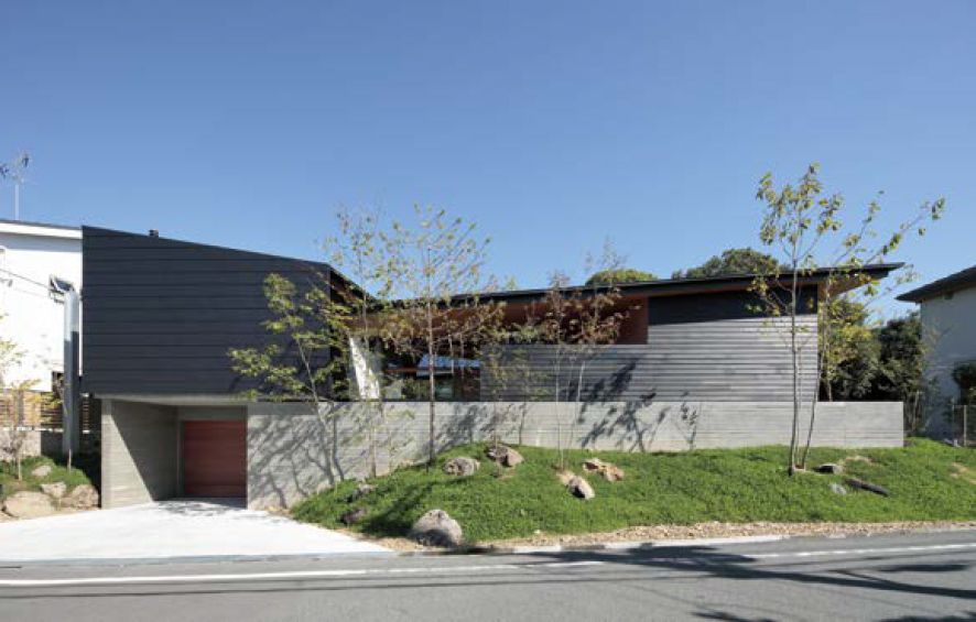 閑静な住宅街の地形勾配に沿いながら矩形に中庭を囲う住宅である。床の高さ、庇や壁位置を操作し外部からの視線と室内の光環境を巧みにコントロールしている他、構造家や造園家の優れた技量に助けられながらもそれに甘えることなく上品な一つの作品としてまとめ上げている点が評価された。一方で自邸というジャンルでありながら技量の発露に留まっている点で作家としてのメッセージ性が弱く、知事賞にまでは至らなかった。
