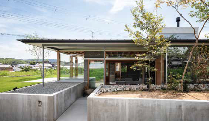 元々田んぼだった軟弱地盤への配慮、隣接する母屋との関係性、そして周辺環境への開放性とプライバシー確保のバランス、いずれもがスマートに解決された秀逸な作品であった。平面計画はもとより、断面計画において、これらの課題が上手に解かれており、約1m の高さに地盤を設定したことや深い軒下空間と土間空間との連続性が、大地や自然の存在を味方につけ、落ち着いた佇まいを獲得することに成功していると高く評価できる。