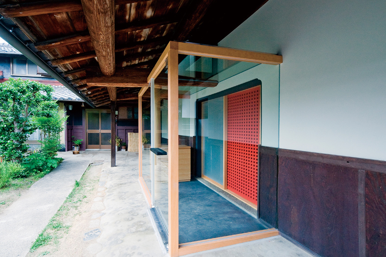 京都の北部、松ヶ崎東山の山裾に接する里に建つ、毎年五山の「法」の字の点火に出向くという夫妻が暮らす、築百年以上の蔵と古い納屋を改修した住まい。改修前に納屋部分はすでに借家として使用しましたが、今回の改修によって、それぞれの元来の空間が蘇り、と同時にその内部に断熱等の住空間としての改良が施されています。住みながら試行錯誤して作り込まれている様々な造作は、あたかも“少年たちが空家に入り込んで小屋作りをしている”かのような楽しさが感じられます。しかし内部では、混在する新旧の要素が巧まずして生み出す調和が、“少年”というよりは、年季の入った大人が童心に帰ったというべき、空間の「妙」を感じさせるものでした。無論、この改修によって残された外観が街並み保全に寄与した功績は、言うまでもなく計り知れません。