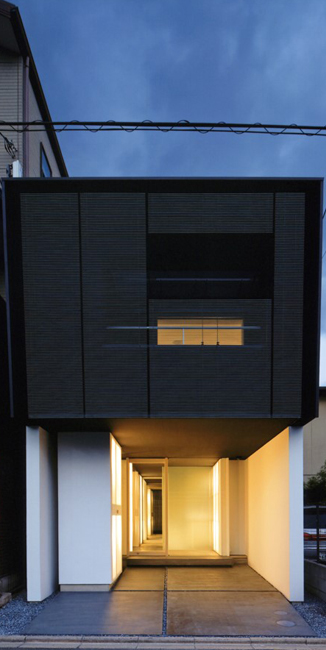京都西陣の古い建物も多く残る地域に建つ。伝統的なモチーフの引用はないが、材料の扱いやディテールの繊細さ、色合い、風合い、適度に連続性のあるプランは、現代の町家として周辺になじんでいる。余分なものをもたない、見せない、住み手の思いが反映された超シンプルな空間では、開口部で切り取られた外の風景が、とても鮮やかなものとして目に飛び込んでくる。