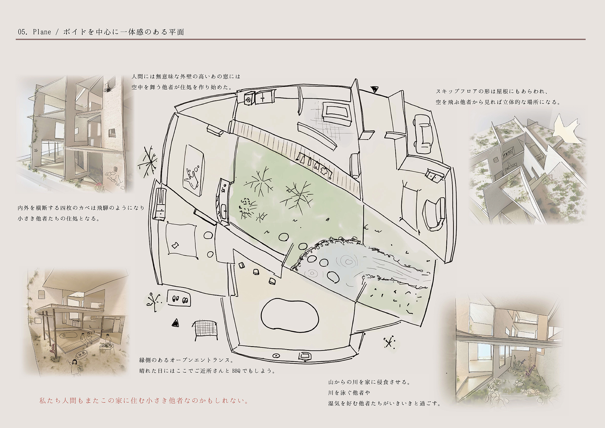 作品集 最優秀賞・企業賞大和リース株式会社 作品テーマ 重なる路地・繋がるポケット 小森 魁 京都美術工芸大学 優秀賞 作品テーマ この指とまれ~見守り、見守られ生活を紡ぐ住宅~ 新原 千宙 京都美術工芸大学 優秀賞・企業賞輝建設株式会社 作品テーマ 小さな集落からなる家 竹中 琴音 京都芸術大学 奨励賞 作品テーマ 結わうくつろぎ-ヌックが広げるコミュニティ- 田口 紗衣 大阪市立大学 奨励賞 作品テーマ 染み込み染み出す家 伊藤 佑那 大阪公立大学 奨励賞 作品テーマ 無限 谷川 虎雅 大阪芸術大学 奨励賞 作品テーマ ソトニワ-都市部での新しい住み方- 岩井 直哉 関西大学 奨励賞 作品テーマ 3 Lanes House 鄭 佳恵 大阪公立大学 入賞 作品テーマ 都市を着=切る肌で感じる軌跡安藤忠雄のTIME’Sを触常者と共に考える 水野 翔太 大阪公立大学 入賞 作品テーマ 野生が集う家-TIME’S(安藤忠雄設計)から集合住宅へのコンバージョン 安部 航一 大阪公立大学 入賞 作品テーマ 風景と成る建築風景を切り取る建築 西岡 千緩 京都芸術大学 入賞 作品テーマ 雨どい壁の家 児玉 有希 帝塚山大学 入賞 作品テーマ 個と共同 赤瀬 唯 奈良女子大学 入賞 作品テーマ 記憶箱の家-記憶から見たもう一つの震災復興- 津川 夕翔音 大阪芸術大学 入賞・企業賞コーラルハウジング株式会社 作品テーマ 小さき他者と暮らす 鈴木 志乃 近畿大学 入賞 作品テーマ CAT TOWER 竹内 優 関西大学 入賞 作品テーマ 個性をだす。-人と関わるきっかけ- 松本 幸智子 近畿大学 入賞 作品テーマ 還る家 東村 天 立命館大学 入賞・企業賞積水ハウス㈱ 作品テーマ ガクセイとワーカーのスリット開拓 中田 ゆずの 京都美術工芸大学 入賞 作品テーマ 都市の中のツリーハウス 西岡 洋亮 関西大学 入賞 作品テーマ ご近所さんは庭から 才賀 咲花 大阪公立大学 企業賞建築資料研究社日建学院梅田校 作品テーマ 翳の羽~屋根が自然をつなぐ~ 斉藤 大地 大阪工業大学 企業賞株式会社総合資格関西本部 作品テーマ 暮らしの箱に命を灯す。 東 彩乃 武庫川女子大学 企業賞株式会社ハマキャスト株式会社吉住工務店 作品テーマ そばを干す家 寺前 海斗 福井工業高等専門学校 企業賞株式会社山弘 作品テーマ 下から見るか、横から見るか、コアラと暮らす家 青木 結香 奈良女子大学